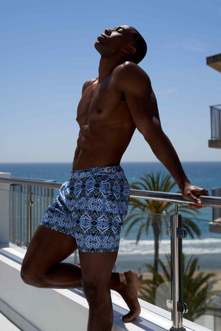 Our signature tailored shorts in vibrant prints. Were inspired by hot continents with azure skies and white sands.